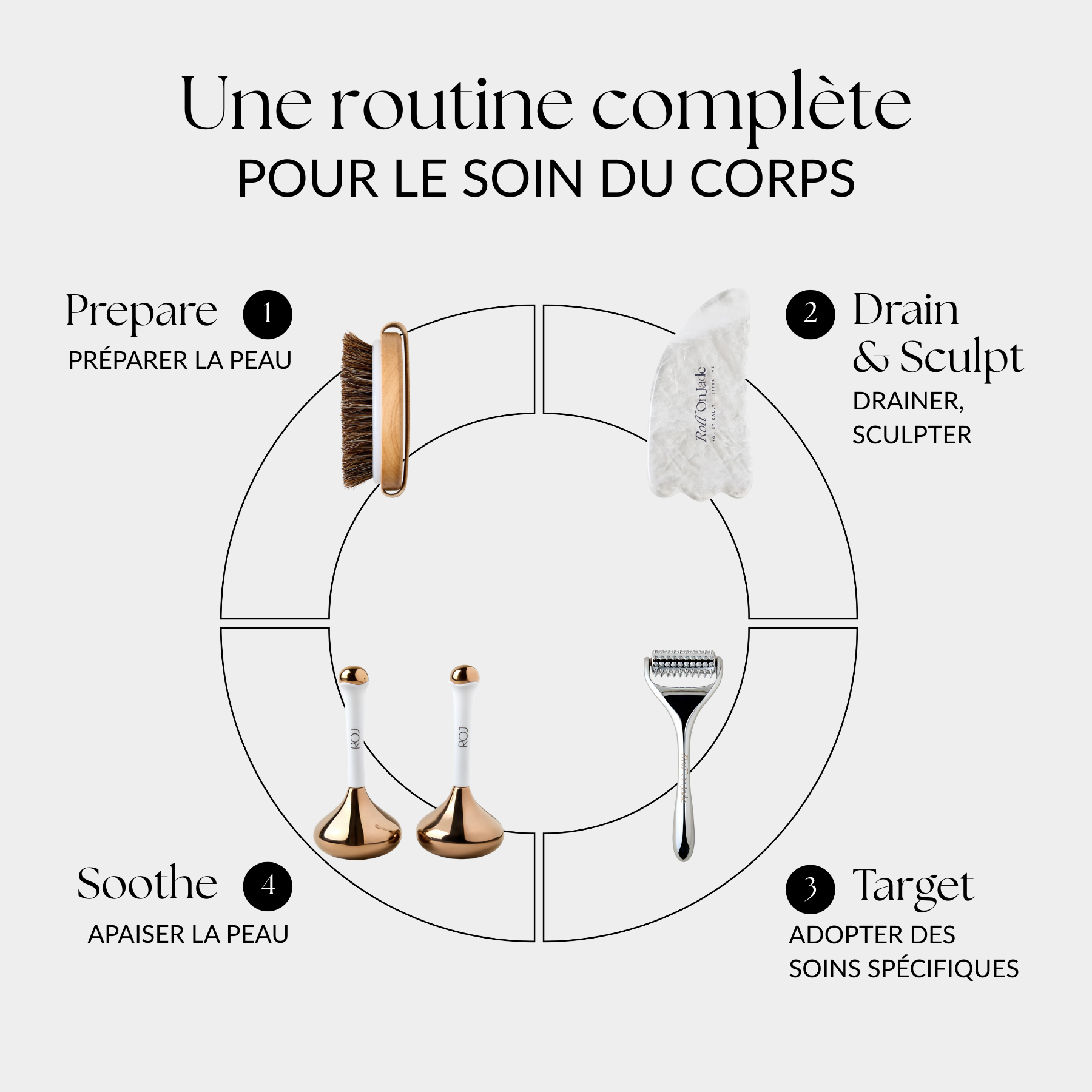 Appliquer son huile corps et effectuer ses massages avec son Gua Sha corps pour venir stimuler, sculpter et masser en profondeur le corps.